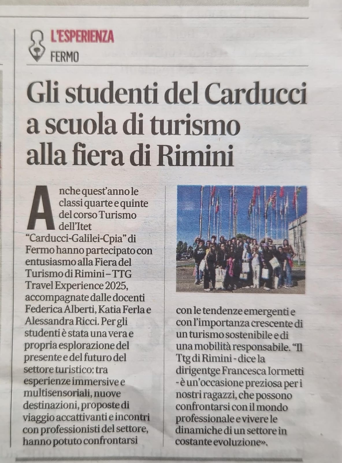 Viaggio intorno al mondo dell’Itet “Carducci-Galilei” alla fiera del Ttg di Rimini13 Ottobre 2025 . NewsDai banchi agli stand, gli alunni della sezione turismo dell’Itet al TTG: abbiamo usato le lingue straniere che studiamo leggi gli articoli su: cronachefermane laprovinciadifermo nostra pagina fb Visita al Comando dei Vigili del Fuoco di FermoUltimi inserimentiViaggio intorno al mondo dell’Itet “Carducci-Galilei” alla fiera del Ttg di RiminiNewsVisita al Comando dei Vigili del Fuoco di FermoNewsIl rito al collegio geometri. Cartellina da disegno agli studenti del I anno: “Un gesto simbolico”NewsL’Itet esce dall’aula: trekking sui Sibillini per gli alunni delle prime. “Gruppo, fatica e meta: tutto si vive insieme”NewsL’Itet apre le porte a 170 matricole:”E’ l’inizio di un nuovo tempo!”Comunicati, News